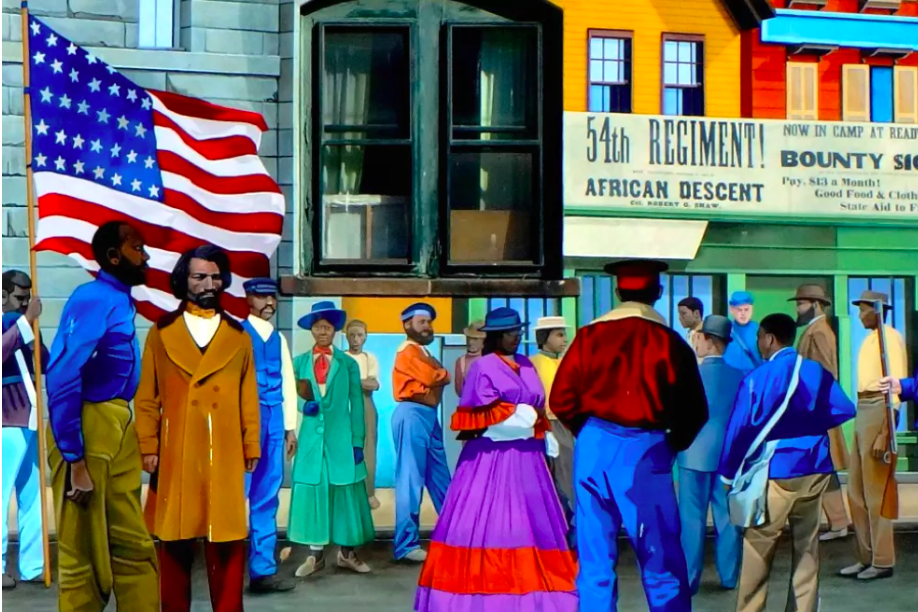 Mural of volunteer infantry on Williams Street, New Bedford, MA